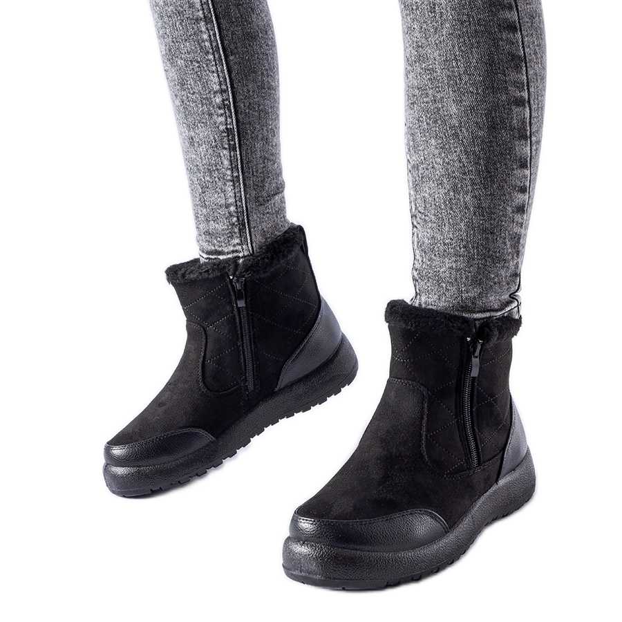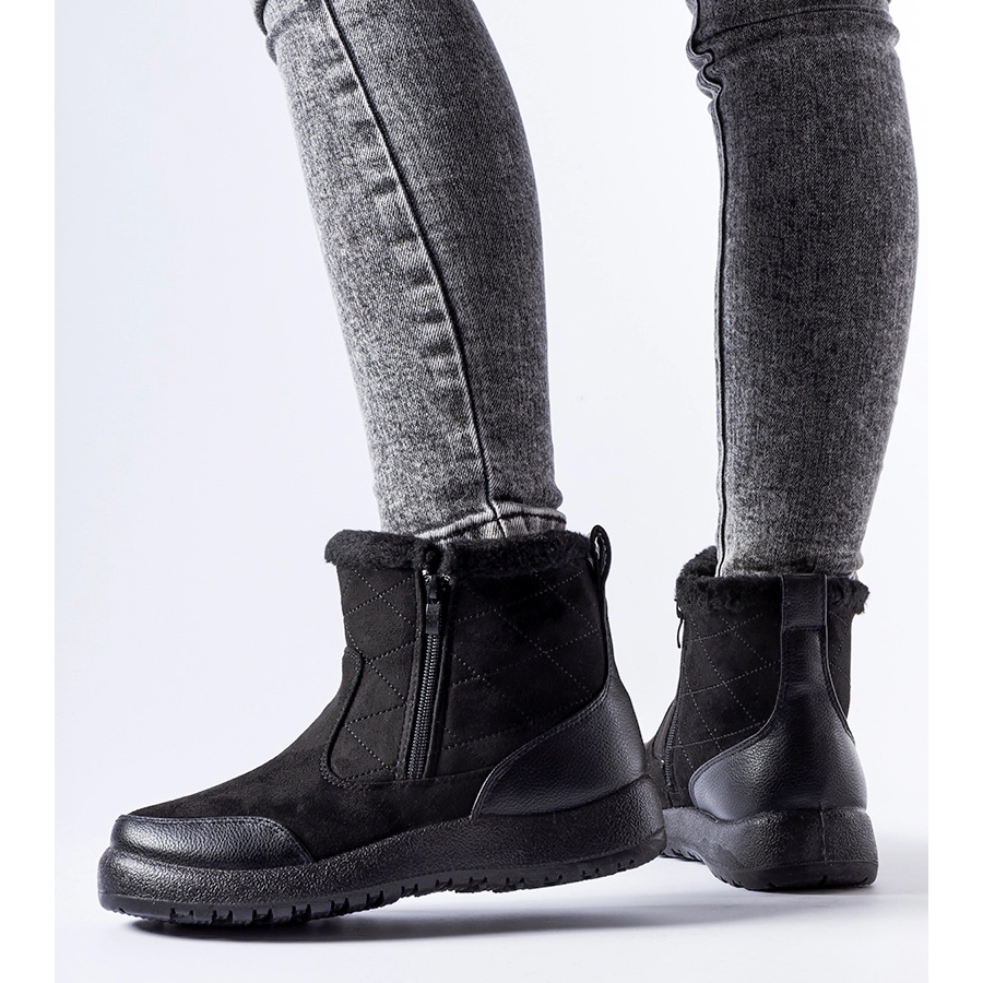 Eleganta, bekväma och varma - Caprarica -stövlar är det perfekta valet för svalare dagar. Fram till vristen, med ett sidolås, säkerställer bekväm att sätta på och stabilt fotunderhåll. Den mjuka, isolerade insatsen och pälsen inuti garanti termisk komfort även vid låga temperaturer, och en platt häl med en höjd av 3,5 cm innebär att du kan tillbringa hela dagen i dem utan trötthet. Den klassiska svarta färgen och runda näsan passade många stilar - från avslappnad till mer elegant.
