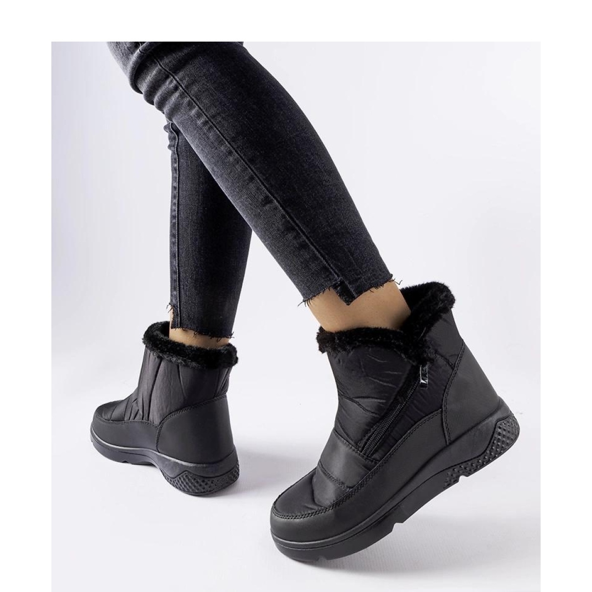 Upptäck den perfekta kombinationen av stil, komfort och funktionalitet med svarta isolerade snöstövlar med en dragkedja, perfekt för vinterdagar. Dessa eleganta skor med hög design, som räcker till vristen, skyddar effektivt mot snö och fukt, och deras runda näsa lägger stil till alla stilisering.