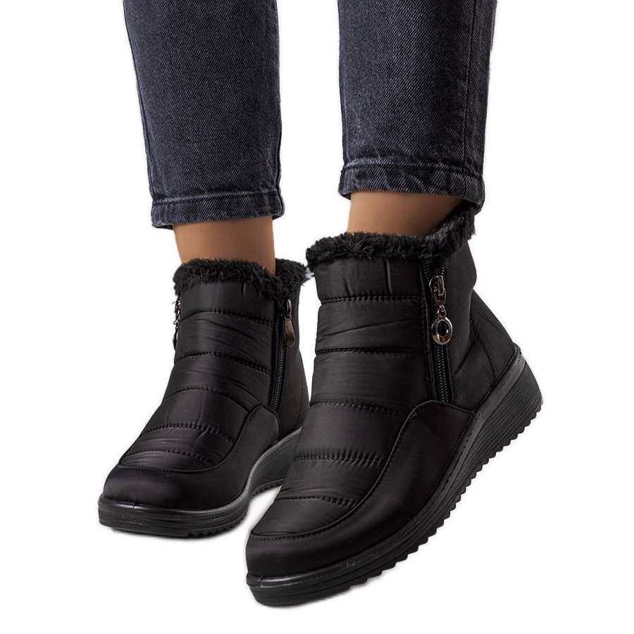 Svarta snöstövlar är de perfekta skorna för varje förkylning. Tillverkad av högkvalitet, slät tyg, med en mjuk, fluffig päls i det inre, garanterar komfort och värme på kalla dagar. Neutrala, svarta färger får dem att passa många vinterstyliseringar.