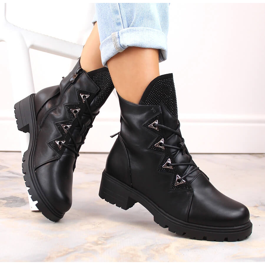 Detaljer: Svarta isolerade stövlar för kvinnor med zirkoner S.Barski HY93-52A