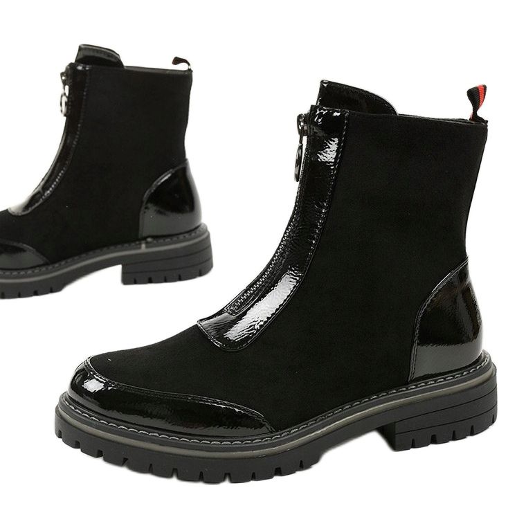 Deras unika design inkluderar lackade tår och klackar, som ger helheten en modern karaktär. Tack vare dragkedjan framtill är det extremt bekvämt att ta av och på kängorna. Stövlarnas insida är omsorgsfullt fodrad med värmande material, vilket säkerställer värme även under de kallaste dagarna.