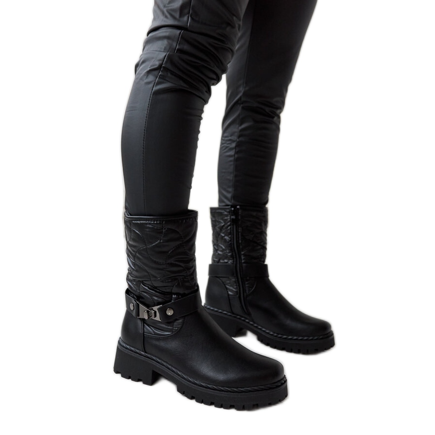 Svarta isolerade stövlar med en dekorativ Lido Belt-modell WD-9102