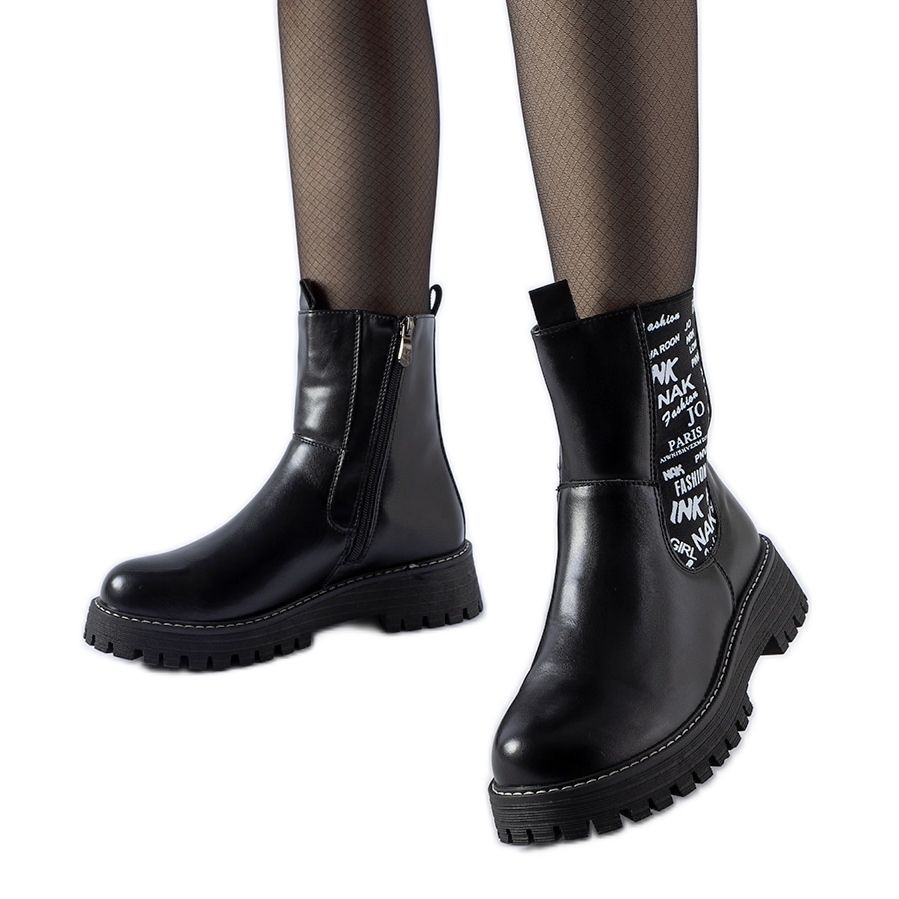 Letar du efter universella stövlar för höstens säsong? D8297 är fashionabla, isolerade stövlar gjorda av ekologiskt läder, med dekorativa inskriptioner som lägger till karaktären på all stilisering. De har en rund näsa och en platt häl med en höjd av 4,5 cm, vilket garanterar komfort och stabilitet varje dag.
