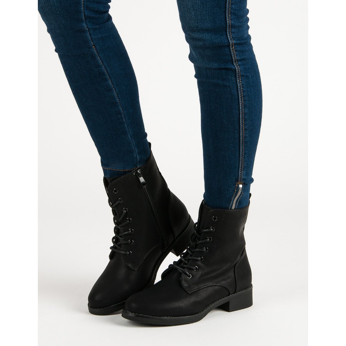 Spets- och dragkedjan gör det enkelt och snabbt att ta av och på skorna. Den runda tån är inte bara ett moderiktigt element, utan också en garanti för komfort för dina fingrar.