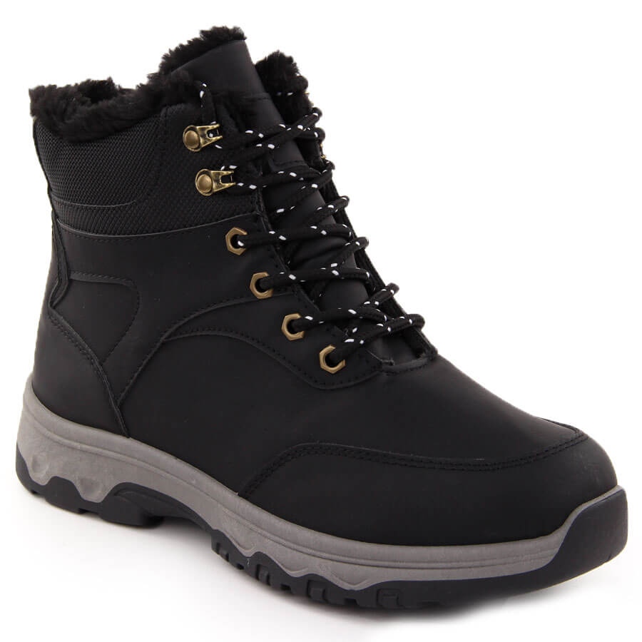 Det inre av skoret har avslutats noggrant med värmande päls, vilket säkerställer termisk komfort på svalare dagar. Modellen har en höjd på den övre ca. 12 cm och den enda tjockleken på 2,5 cm, vilket säkerställer god vidhäftning och stabilitet när du går. Fäst i form av snörning gör att du kan passa skorna på foten.