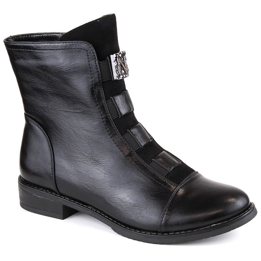Detaljer: Svarta Jezzi-isolerade ankelstövlar för kvinnor med dekoration