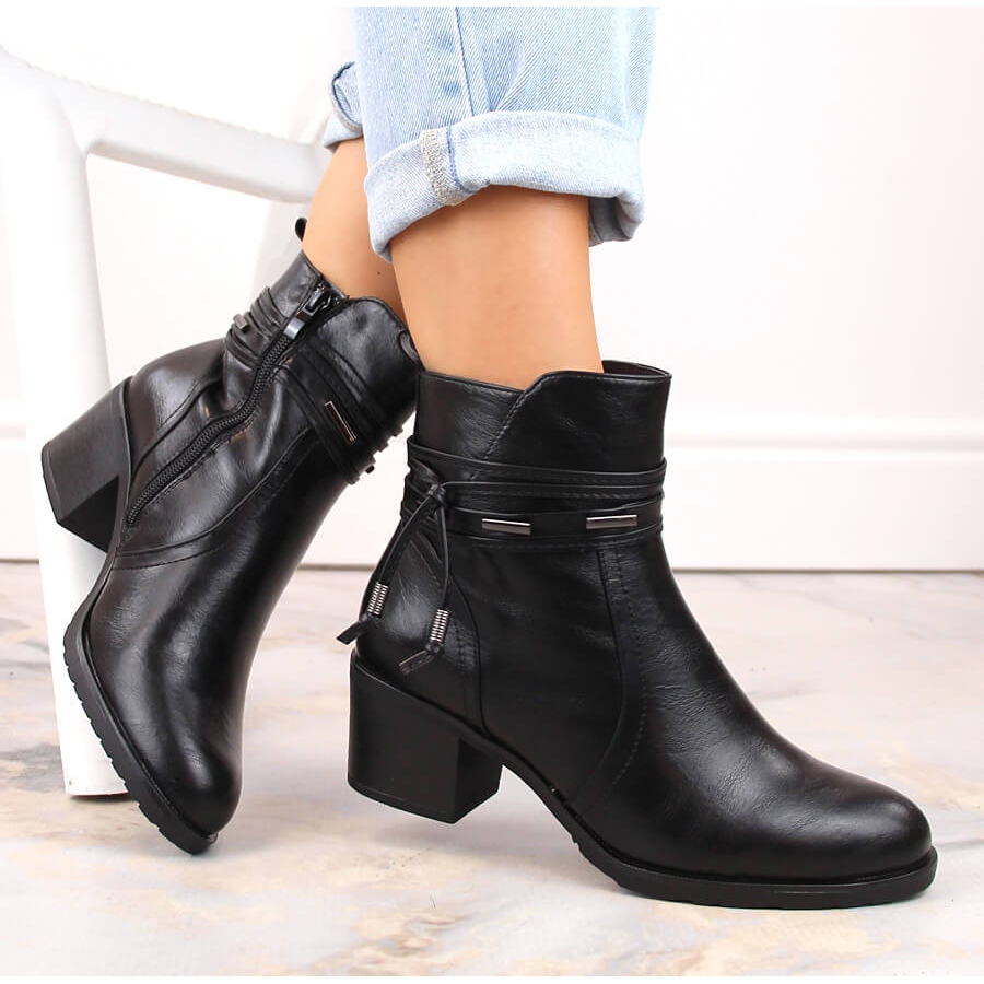 Detaljer: Svarta Jezzi-isolerade högklackade ankelstövlar för kvinnor med dekoration