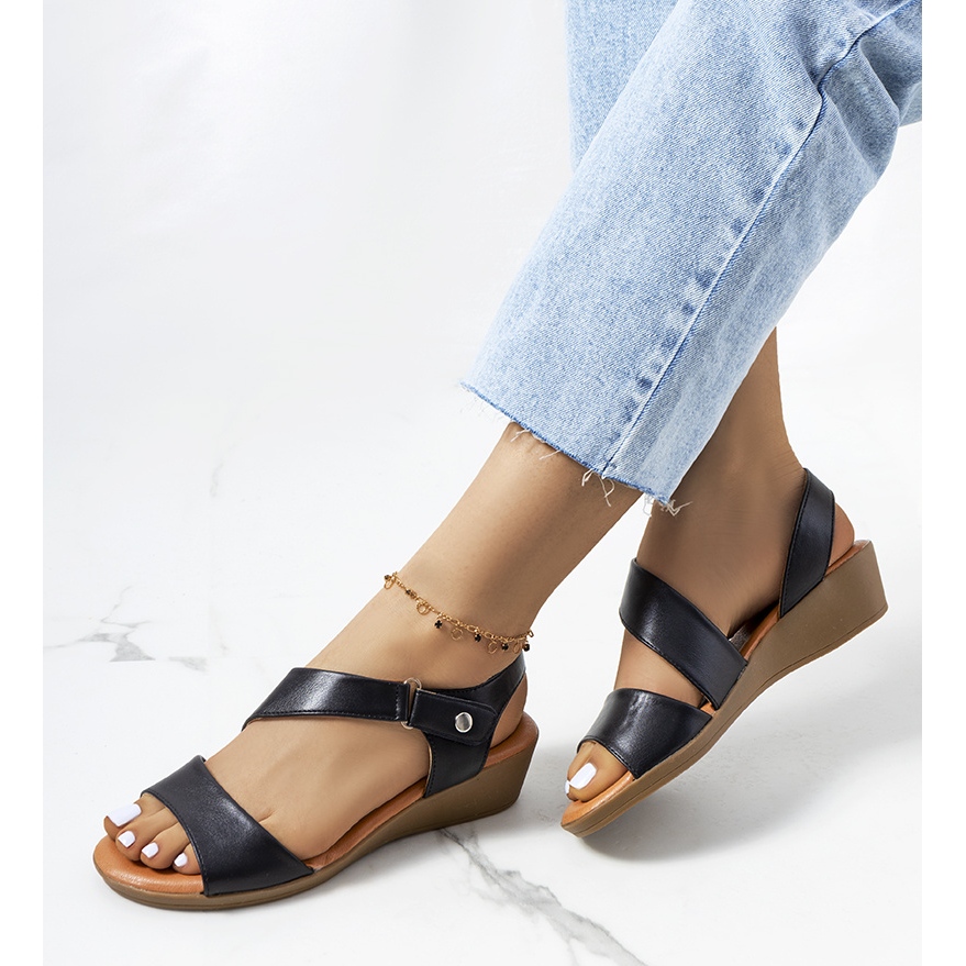 Svarta Souttar kilasandaler är ett perfekt val för sommardagar, som kommer att lägga till elegans och en unik karaktär till din styling. Bekväma skor, gjorda av högkvalitativt ekologiskt läder, garanterar komfort att bära hela dagen. Den mjuka innersulan gör även långa promenader inga problem.