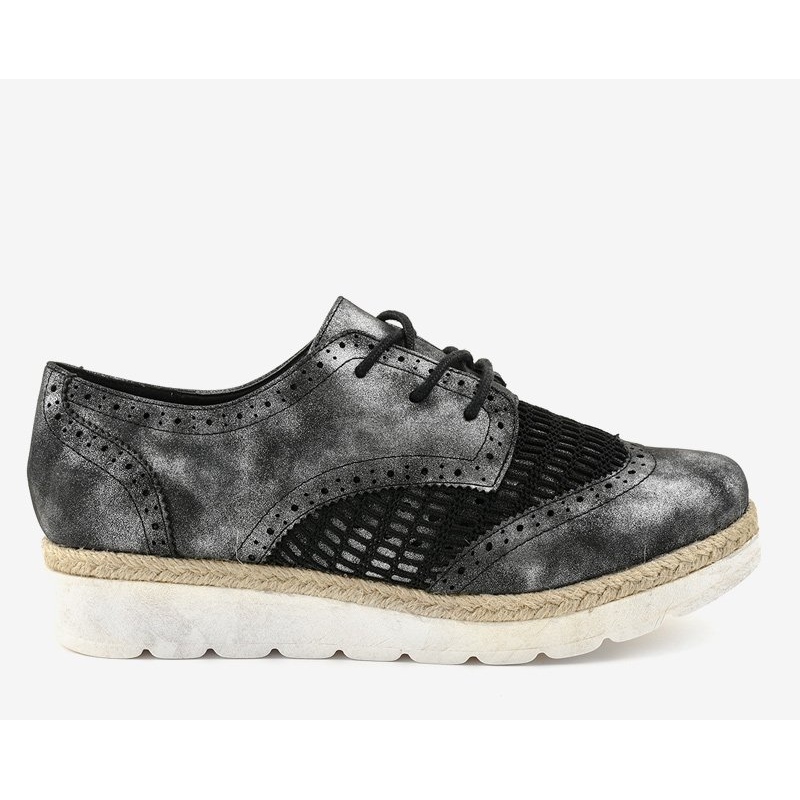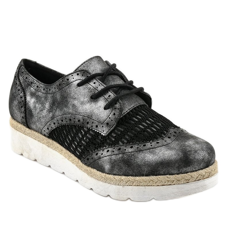 Den svarta ovandelen med en rund tå och snörning gör att denna modell passar perfekt till alla fötter, vilket säkerställer bekvämt vardagsbruk. En ytterligare fördel är jutesnöret som lindas runt den vita, syntetiska sulan, vilket ger skorna en unik karaktär.