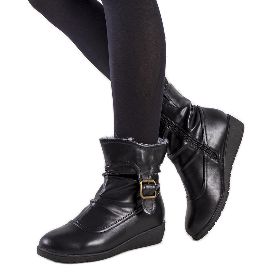 Detaljer: Svarta kilstövlar med Slater-spänne