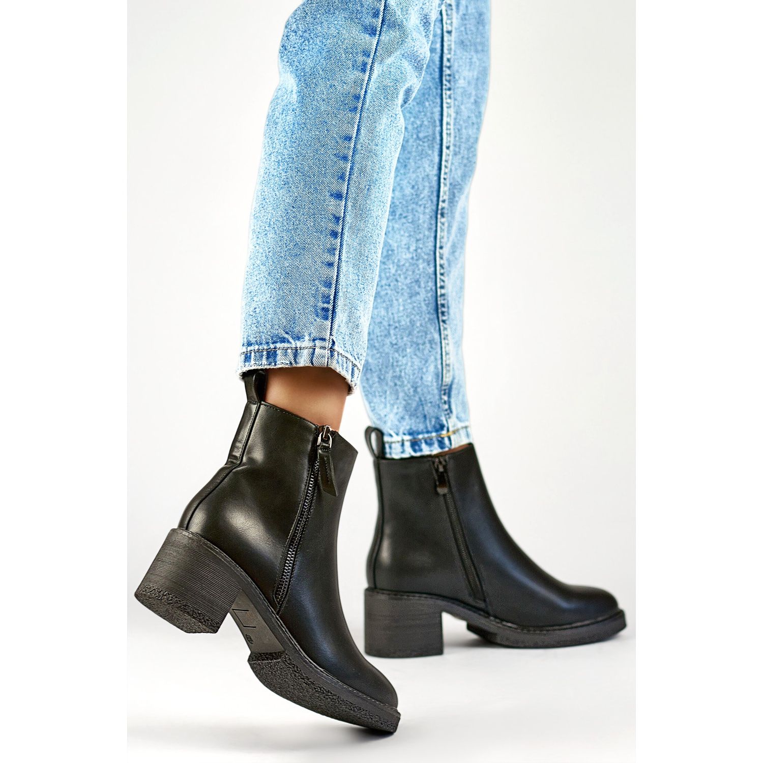 Inna marka Svarta klassiska ankelstövlar för kvinnor med en bekväm klack, ankelstövlar för kvinnor av ekologiskt läder