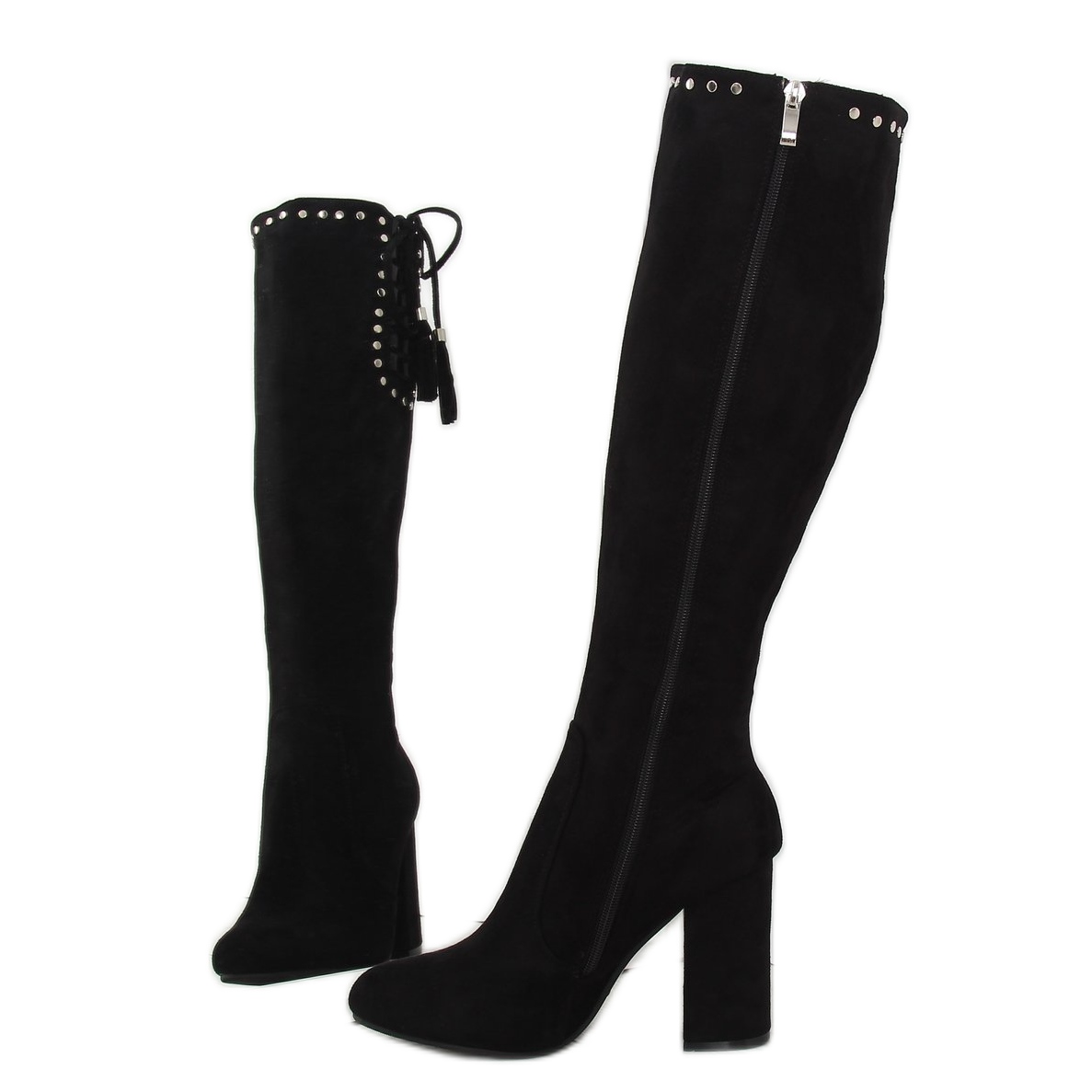 Upptäck klassisk stil och komfort i en av de senaste modellerna av högklackade stövlar! Dessa eleganta svarta stövlar gjorda av ekologisk mocka av hög kvalitet är det perfekta valet för kvinnor som värdesätter både moderiktigt utseende och komfort.