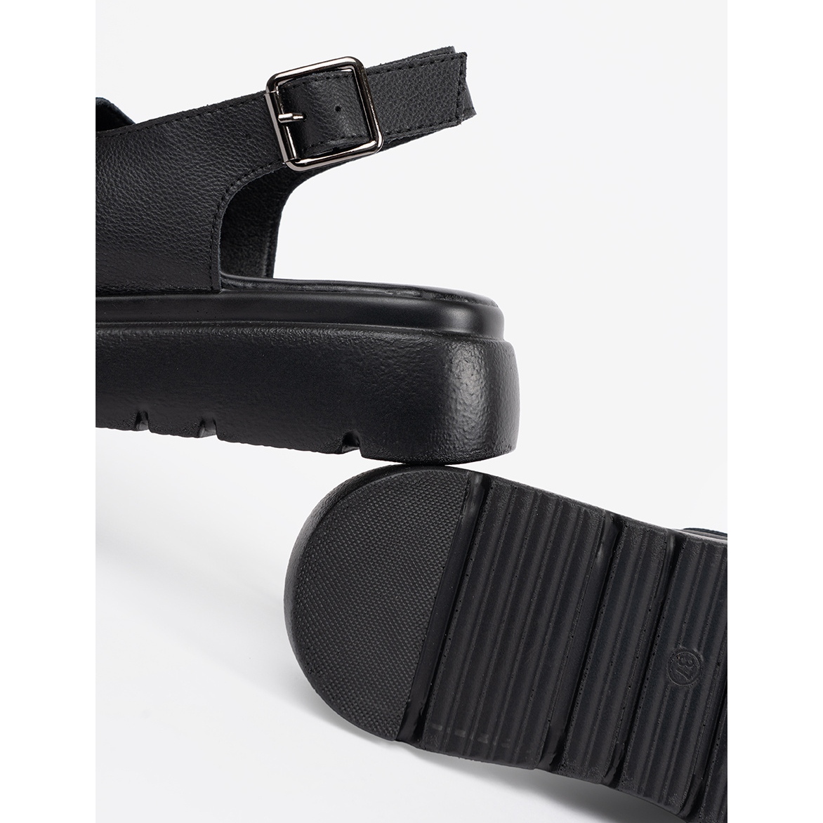 Vi presenterar svarta klassiska sandaler på plattformen från den berömda tillverkaren Goodin, som kombinerar elegans med komfort, perfekt för varma dagar. Tack vare höjden på plattformen på 3,5 cm erbjuder dessa sandaler utmärkt fotstöd under hela dagen för att ha på sig.