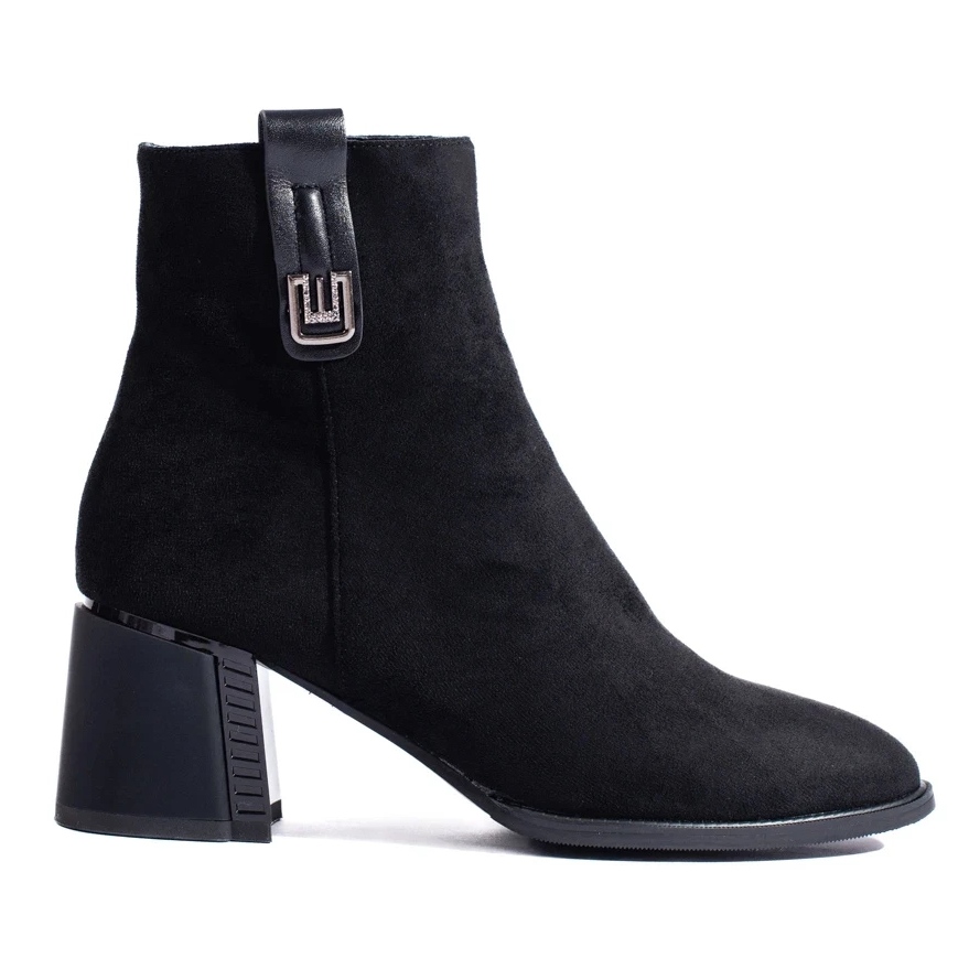 Klassiska, tidlösa Shelovet -stövlar i en svart nyans är ett förslag för kvinnor som värderar stil och komfort. Tillverkade av högkvalitativt ekologiskt läder med mockestruktur, de är perfekta för hösten och våren. Tack vare uppvärmningen ger de värme på svalare dagar, och en stiven klack och en stabil häl, till exempel en postgaranti för att hålla foten.