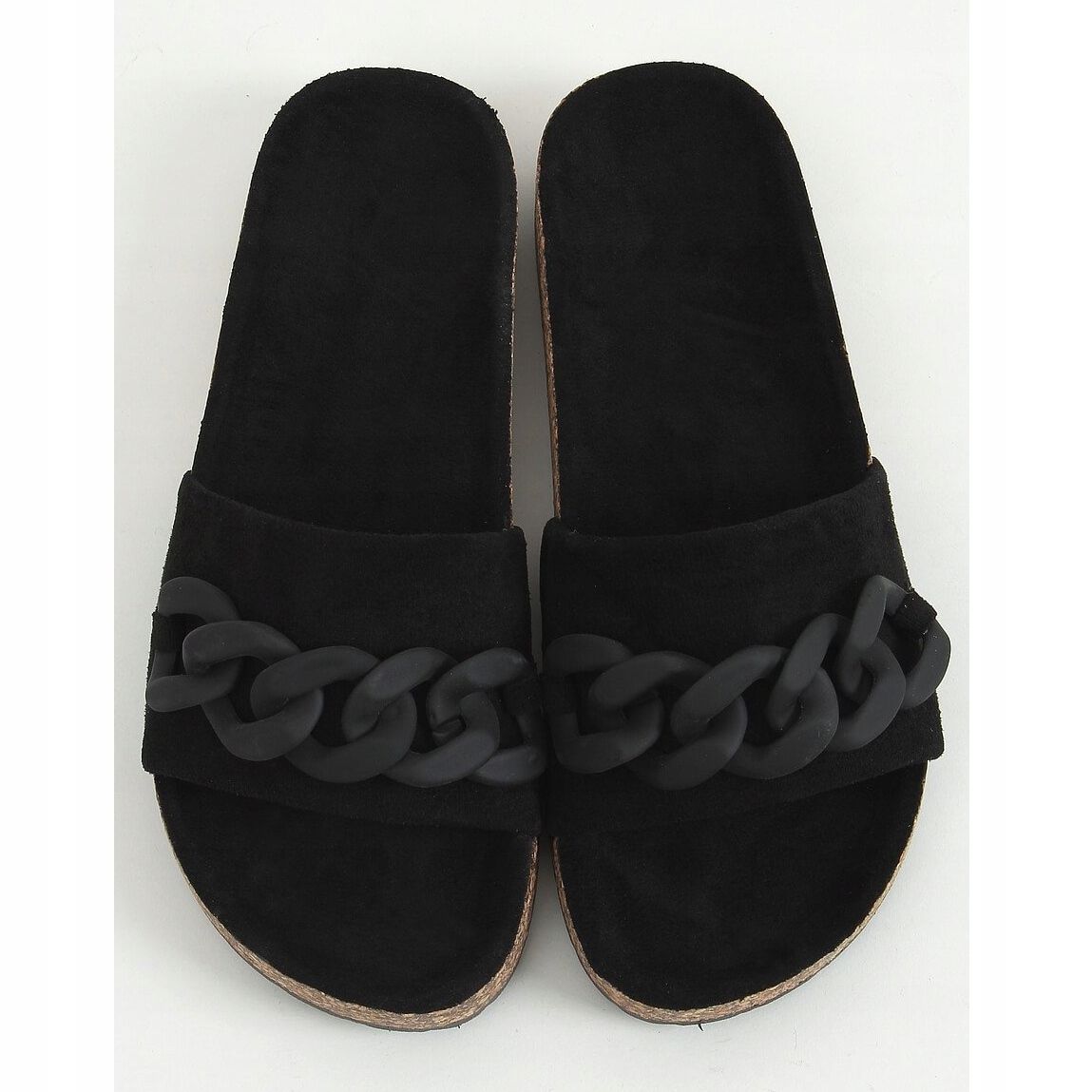 Inna marka Svarta kork tofflor med kedja DZ907 Svart