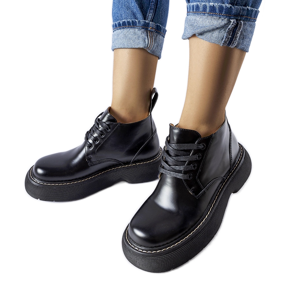Skorna har en rund tå och är snörda, vilket gör att de passar perfekt till foten, vilket säkerställer maximal bärkomfort. Tillverkad av högkvalitativt ekologiskt läder och gummi, arbetarna är både hållbara och estetiska. Den svarta, släta finishen gör dem lämpliga för många olika kombinationer - från avslappnad till mer elegant.