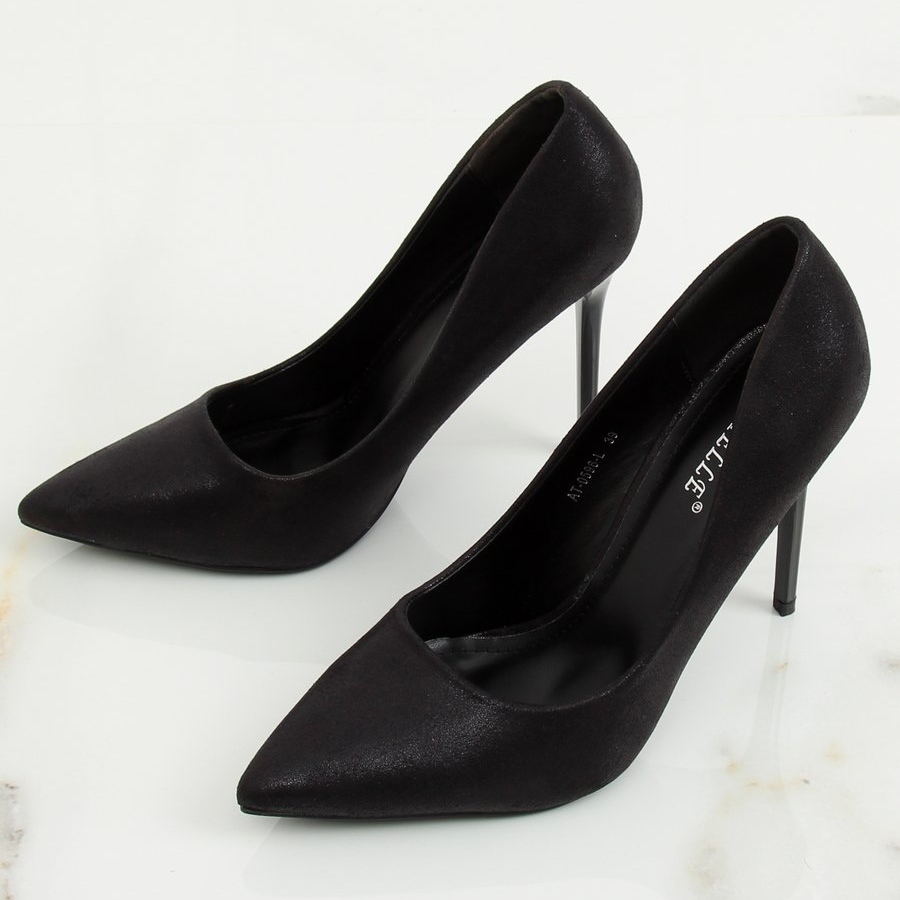 Upptäck elegans och stil med svarta högklackade damskor AT-0596-L Svart. Dessa 11 cm höga klackpumpar är designade för självsäkra kvinnor som vill framhäva sina tillgångar. Den glänsande och skimrande finishen ger dem en unik karaktär, vilket gör dem perfekta för kvällsutflykter och speciella tillfällen.