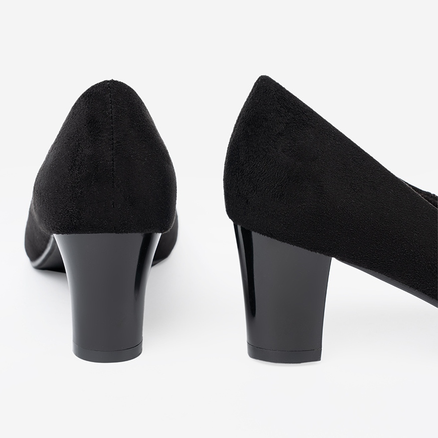 Höjdhöjden på 6 cm, på en stabil stolpe, gör pumpar till ett bra val för både vardagliga, avslappnade stiliseringar, samt mer formella, eleganta uppsättningar. Tack vare införandet är det snabbt och bekvämt att lägga på och ta av skor.