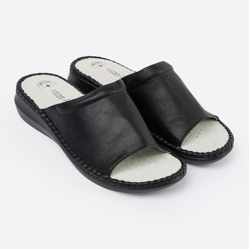 J. Star J. Star Svarta kvinnors tofflor med läderinsats