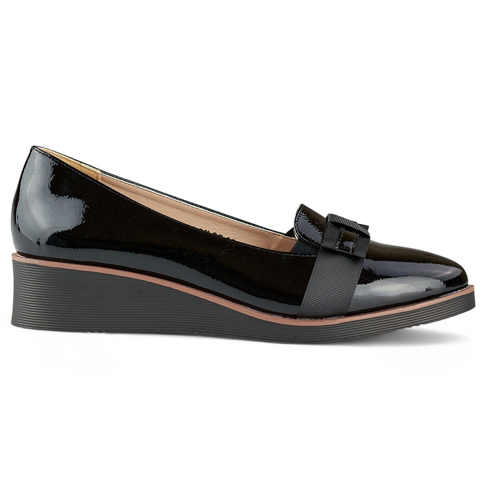 Upptäck elegans och komfort i en, välja svarta lackerade kvinnors skor på en låg kil från en ansedd tillverkare. Dessa unika skor passar perfekt in i de senaste modetrenderna, och erbjuder inte bara ett snyggt utseende, utan också praktiska.
