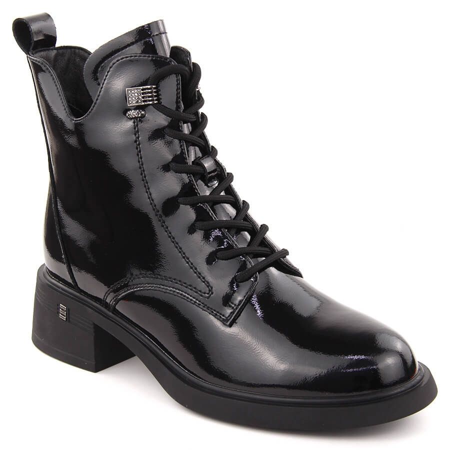 Upptäck elegans och komfort med lackerade kvinnors stövlar D&A S. Barski Premium Collection CR42-089 i svart. Dessa unika stövlar har utformats för kvinnor som vill lägga till stil till sina dagliga stiliseringar. Deras vackert skimrande övre av hög kvalitet naturläder fångar inte bara ögat, utan passar också perfekt in i de senaste modetrenderna.