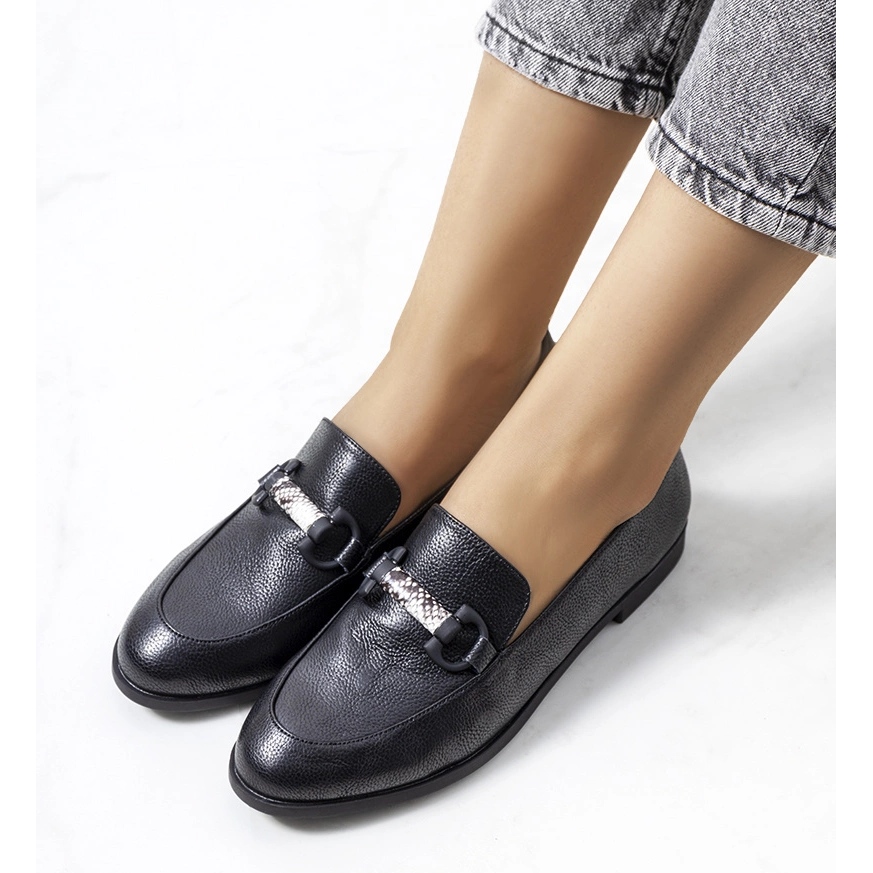 Klassiska kvinnors skor tillverkade av naturläder, som smälter in perfekt med både vardagliga och mer eleganta stiliseringar. Mandelnäsan slår optiskt foten, och den dekorativa kedjan lägger till en subtil karaktär. Den övre och naturliga läderinsatsen ger komfort, god ventilation och hållbarhet.