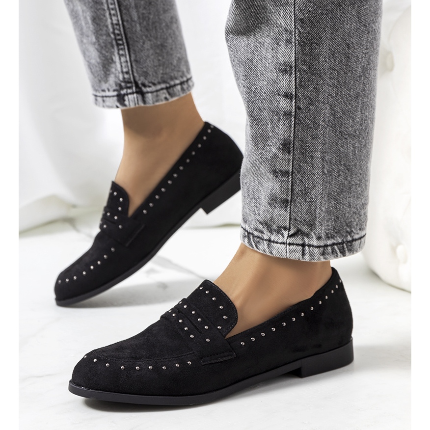 Detaljer: Svarta läderskor med Ishana nitar