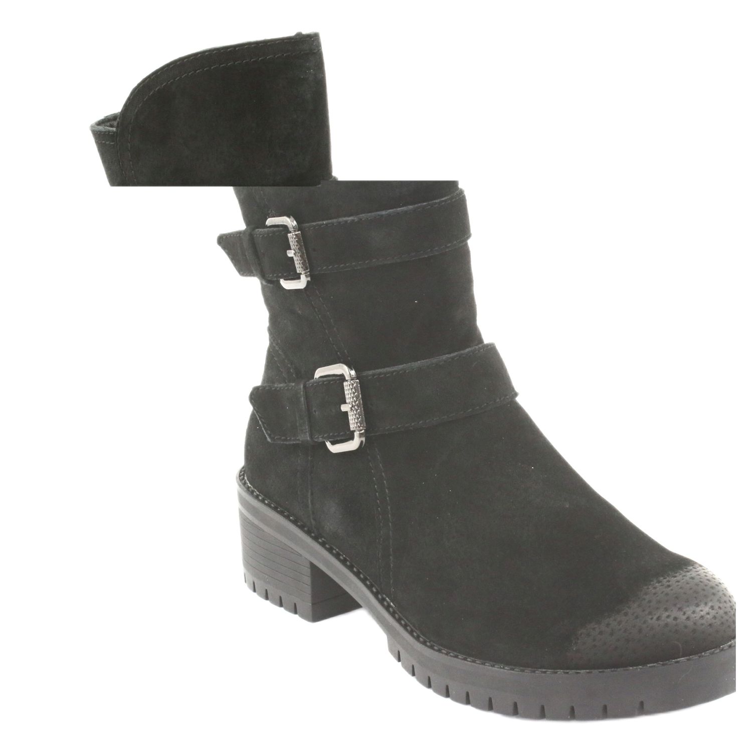 Lär känna M.Daszyński 161 stövlar i mocka, perfekta för kallare dagar! Dessa eleganta svarta stövlar kombinerar perfekt modedesign med komfort att bära. De är gjorda av naturligt velourläder och erbjuder både stil och hållbarhet.