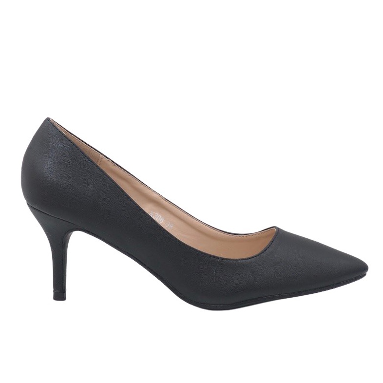 Svarta låga stilettpumps K308 är den perfekta kombinationen av klassiskt och elegans som borde finnas i varje kvinnas garderob. Dessa unika skor kännetecknas av en 7-centimeters stilettklack, vilket gör att benen ser smalare ut och silhuetten blir mer attraktiv.