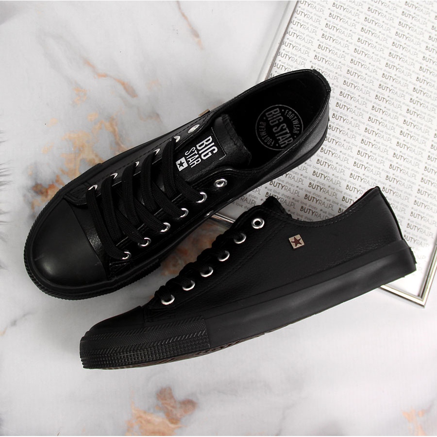 Låga sneakers gjorda av svart eko-läder från märket Big Star är ett idealiskt förslag för kvinnor som värdesätter ett moderikt utseende och komfort i vardagsbruk. Modellen V274871 är en kombination av klassisk och modern stil, som passar perfekt in i en mängd olika stilar - från avslappnad till mer elegant.