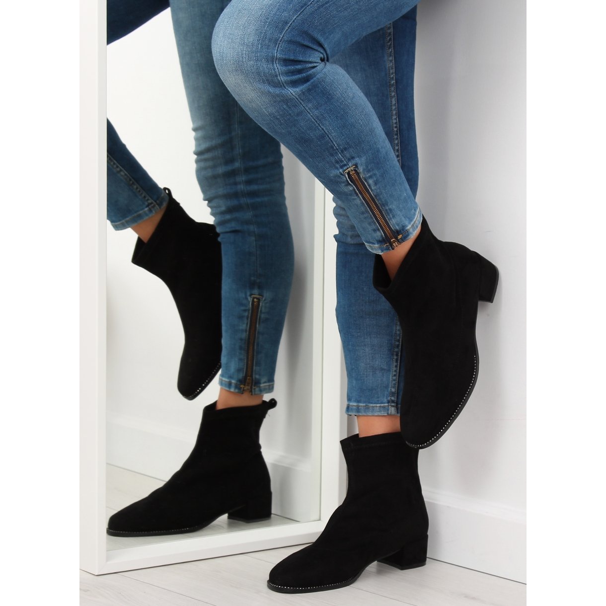 Information: Svarta lågklackade stövlar F184 Svart