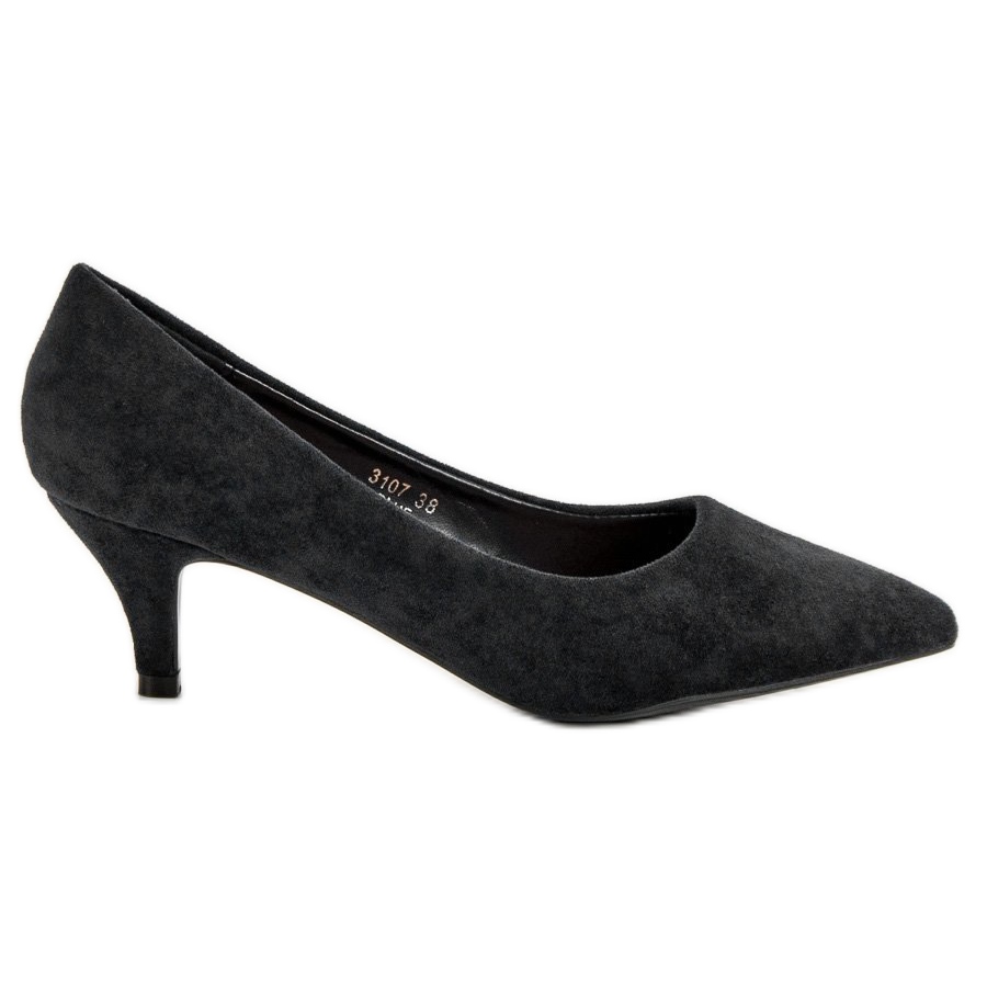 Upptäck elegans och komfort med svarta låga Nio Nio-klackar! Dessa snygga pumps är det perfekta valet för kvinnor som värdesätter kombinationen av klassisk stil och de senaste modetrenderna. De är gjorda av ekologiskt mockaskinn och ser extremt chic ut, och deras spetsiga tår ger feminin charm.