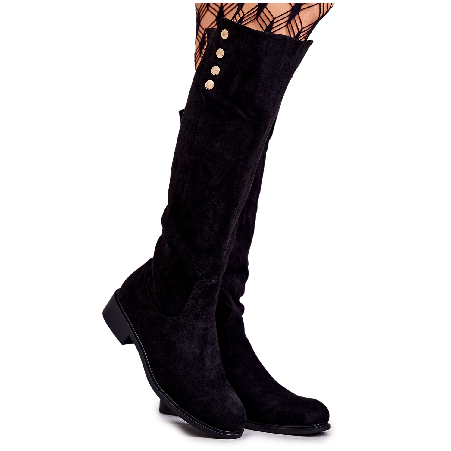S. Barski Suede Isolated Flat -Heeled Boots - Laura (Black)