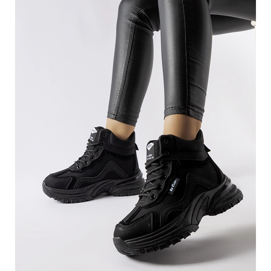 Svarta Lee Cooper LCJ-23-44-1976L stövlar är perfekta skor för kvinnor som vill kombinera komfort med en moderiktig look under vinterdagar. Dessa snygga stövlar kännetecknas av en praktisk, rund tå, vilket säkerställer bekvämt bärande och tillräckligt skydd mot kall luft. Tack vare snörning kan användarna enkelt anpassa dem till sina fötter, vilket garanterar en ännu bättre passform.