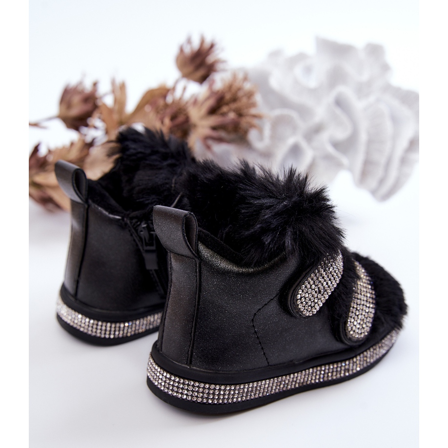 Designade med unga fashionistas i åtanke, kännetecknas snökängorna av zirkonapplikationer placerade på kardborrebanden och på sulan, vilket ger en elegant karaktär. Tack vare den praktiska dragkedjan på sidan av ovandelen går det snabbt och enkelt att ta på sig skorna, vilket kommer att uppskattas av både barnet och föräldrarna.