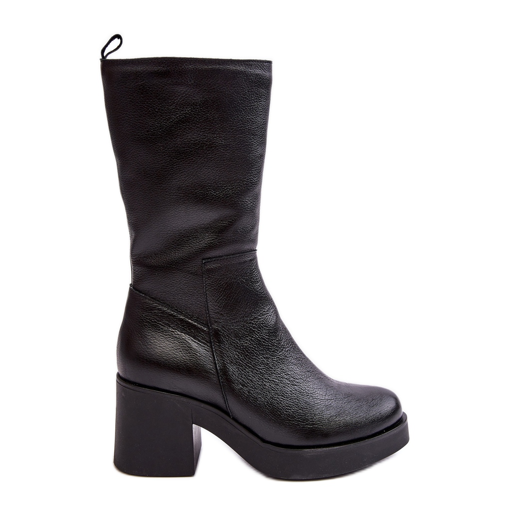 Detaljer: Svarta Lemar Odennia läderstövlar för kvinnor på en tjock klack