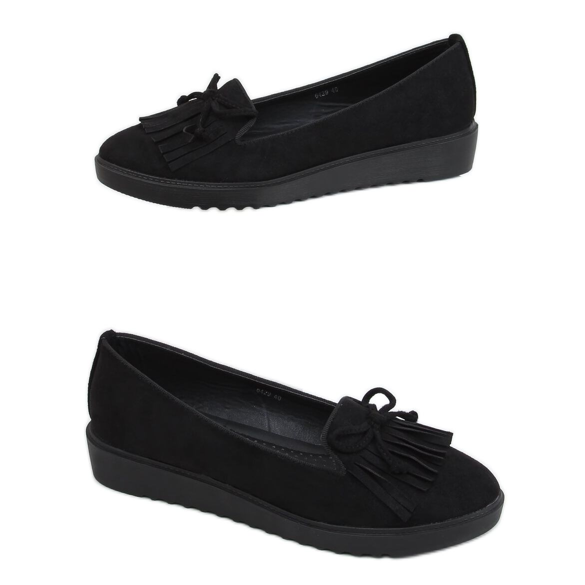 Detaljer: Svarta loafers med fransar 6429 Svart