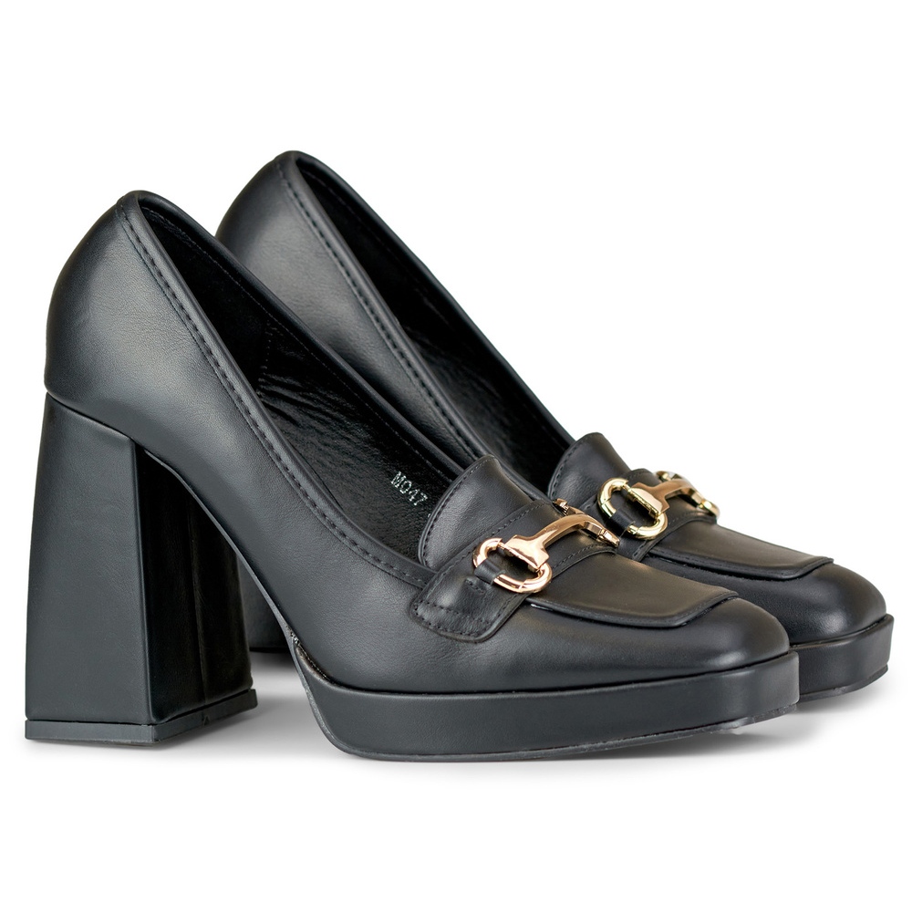 Svarta loafers på en hög, bekväm häl är en kombination av klassiker och modern stil - idealisk för kvinnor som värderar elegans och komfort dagligen och under större utgångar.