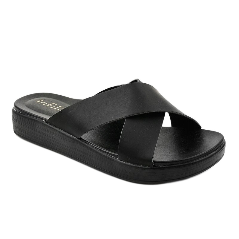 Svarta damtofflor LU22 är ett idealiskt erbjudande för kvinnor som värdesätter komfort och en moderiktig look varje dag. Tillverkade av högkvalitativt ekologiskt läder i en djupsvart färg, dessa casual flip-flops kommer att vara ett bra komplement till alla sommarstylingar.
