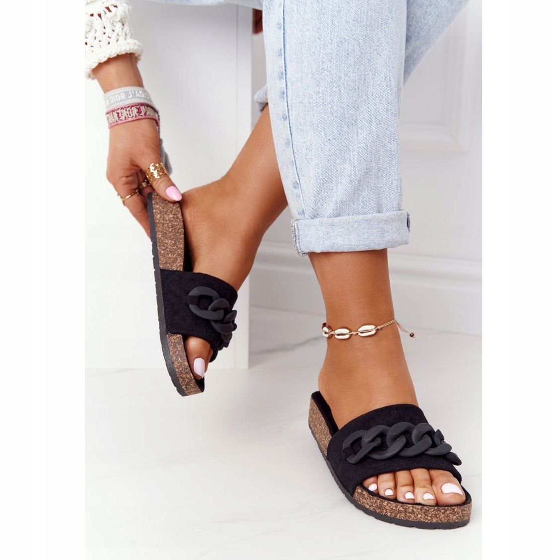 Information: MSMG Svarta Makayla mocka tofflor på korksulan