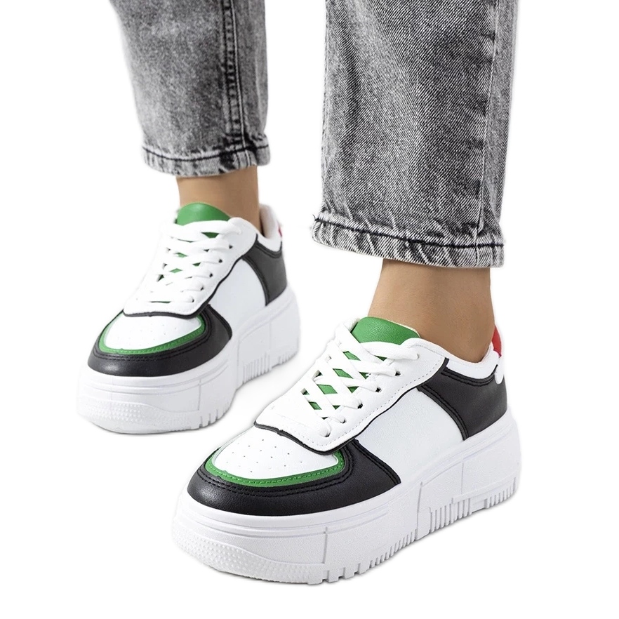 Mandib-sneakers, som är gjord av högkvalitativ eko-läder, glädjer sig framför allt extremt eleganta skär med eko-del i en snöig vit färg, som perfekt står i kontrast till den svarta basen. En sådan färgkombination garanterar att dina stiliseringar kommer att få en unik karaktär. Dessa sneakers kommer att vara ett stort komplement till både avslappnade och mer eleganta kläder på våren och sommaren.