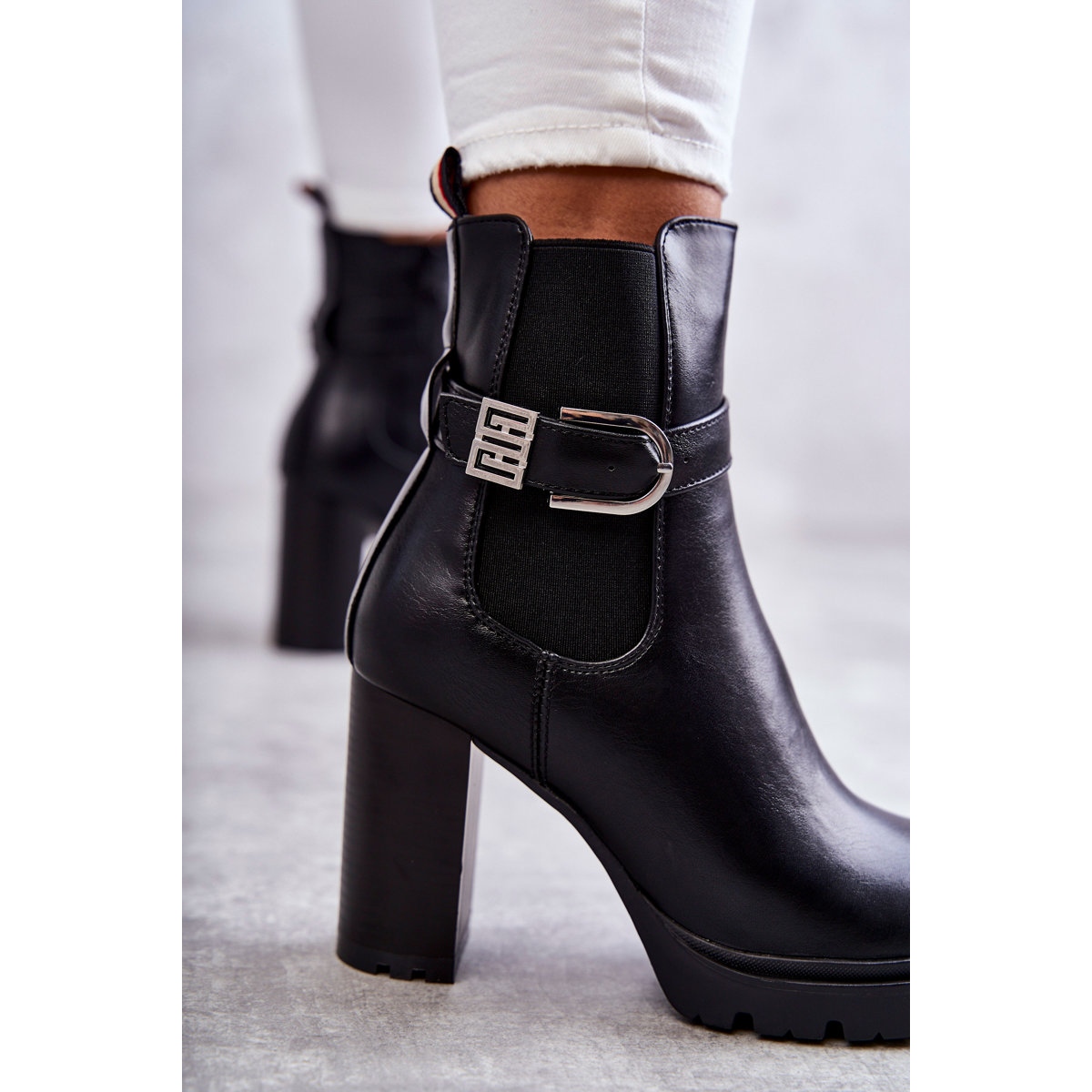 FE1 FE1 Svarta Maresol-läderstövlar på stolpe med dekorativt bälte