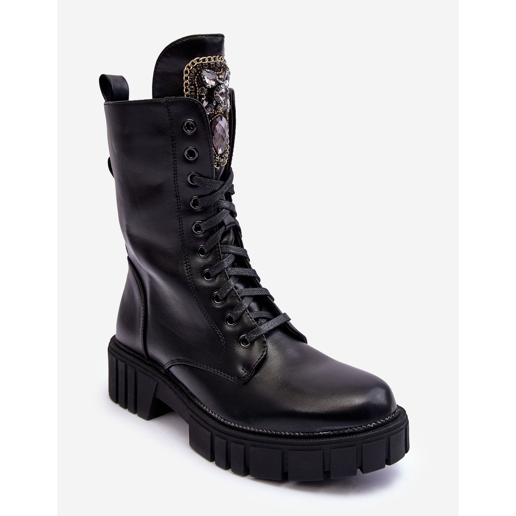 Användningen av de bästa materialen och uppmärksamhet på detaljer gör PS1 läderarbetarstövlar med smyckesdekoration Svarta Marx-skor som kommer att möta förväntningarna hos även de mest krävande kvinnor som letar efter en kombination av stil, komfort och värme.