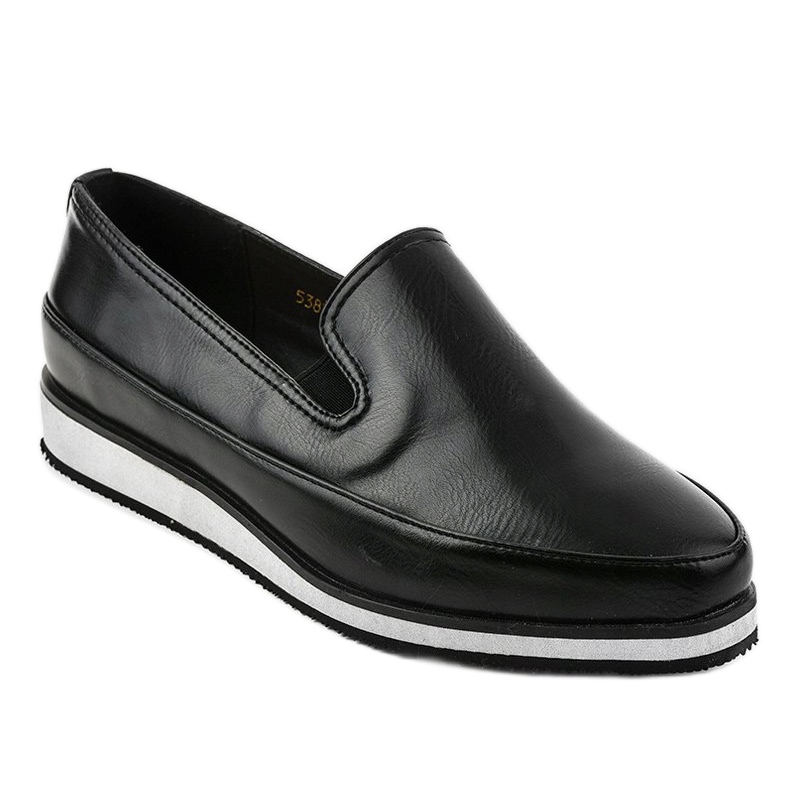 Dessa skor kännetecknas av en rund tå, vilket ger dem subtilitet och elegans. Tack vare slip-on-fästet är det extremt enkelt och snabbt att ta på sig skorna. Finns i en universell svart färg, de matchar perfekt med olika klädstilar, från avslappnad till mer elegant.