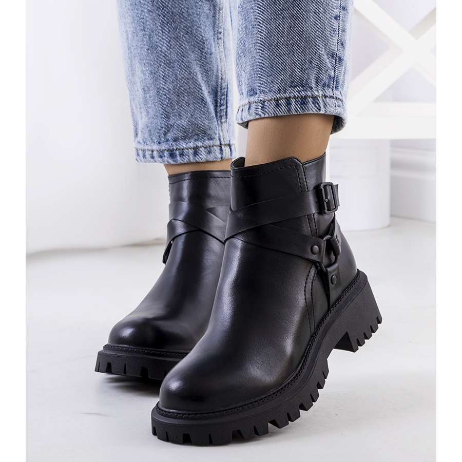PA1 MERAZ - Svarta kvinnors stövlar som kommer att visa upp allt stilisering. Meraz -modellen kombinerar urban bekvämlighet med en fashionabel, rå karaktär: en traktor -sula lägger till klor och ger god vidhäftning, och den rundade näsan och platta, 4,5 cm häl garanti komfort varje dag.