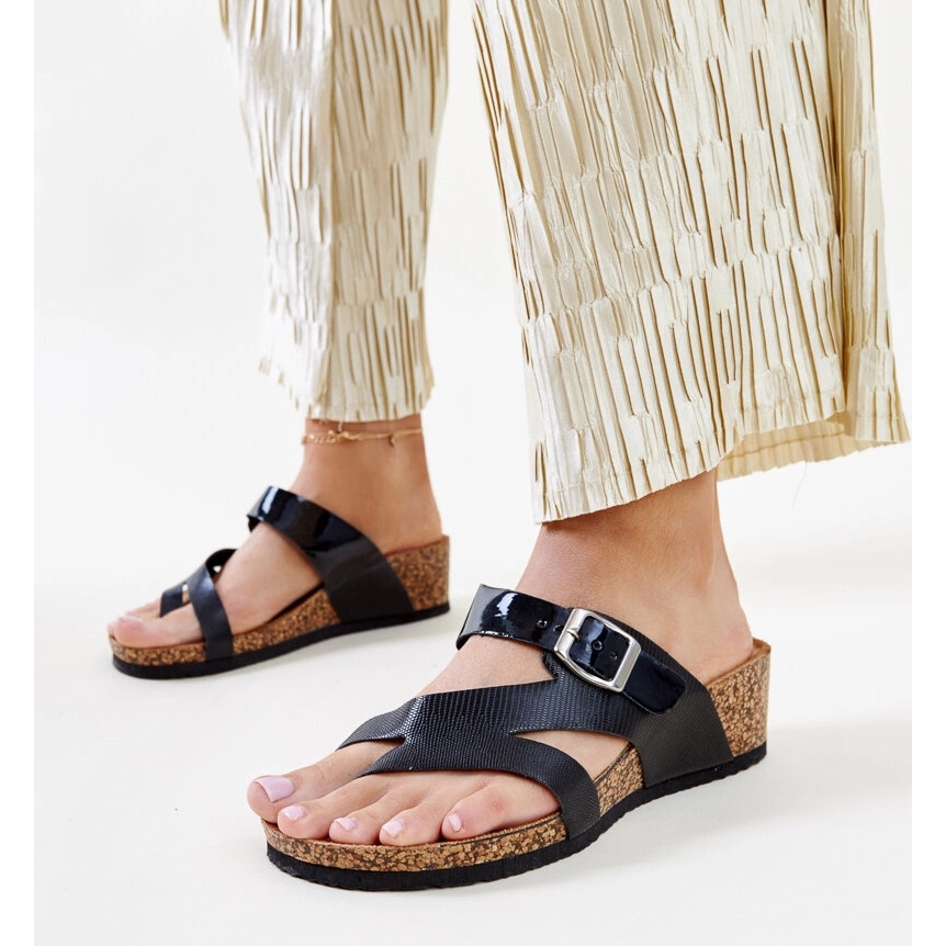 Upptäck elegans och komfort i form av svarta metalliska flip flops donata. Dessa innovativa flip -flops, skapade för moderna kvinnor, kombinerar fashionabla design och bär komfort. Perfekt för en daglig basis, de är ett perfekt komplement till varje stilisering - både avslappnad och mer elegant.