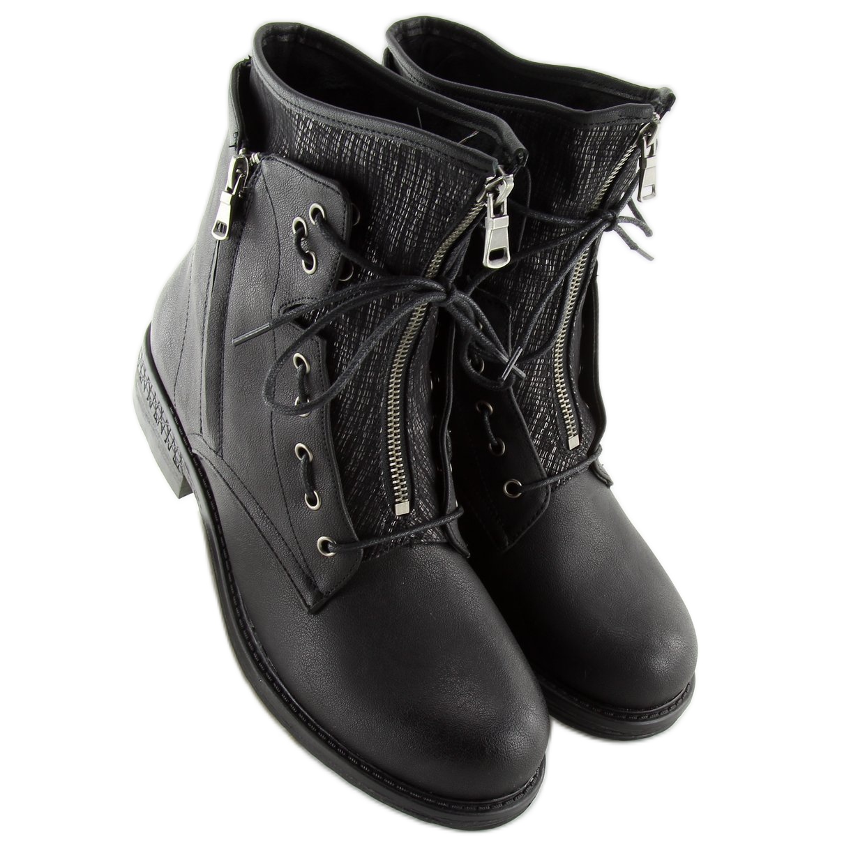 Vi presenterar imponerande militärstövlar för kvinnor CLS-31 i svart, som säkert kommer att locka uppmärksamheten från alla älskare av fashionabla tillbehör. Dessa stenarbetare kännetecknas av unika glänsande eko-läderinsatser som ger dem en stilig lyster. Den ursprungliga dragkedjan placerad i mitten av skon passar perfekt in i de senaste trenderna, vilket gör dem till ett idealiskt val för olika tillfällen.