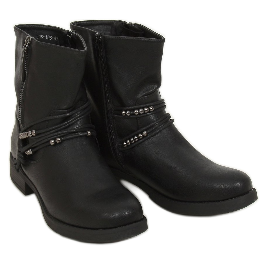 Vi presenterar Black Military Boots J19-108 Black - ett perfekt val för kvinnor som värdesätter mode och komfort varje dag. Dessa platta ankelboots kombinerar en militär stil med en elegant accent tack vare den svarta färgen som aldrig går ur modet.