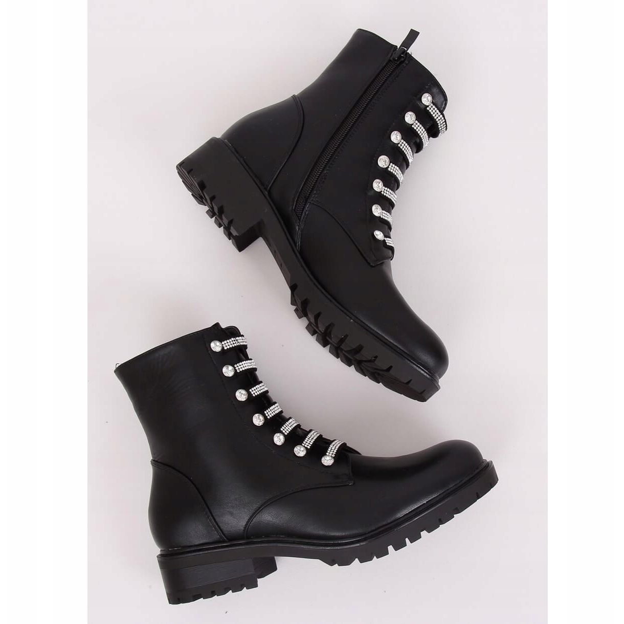 Deras front är dekorerad med imponerande imitationssnörning, som är översållad med blanka stenar, vilket ger dem en unik karaktär. Denna modell är ett perfekt val för dagligt bruk, och lägger till lite militära accenter till varje styling. Högkvalitativ syntetisk sula med skydd garanterar bekvämt bärande och bra grepp.