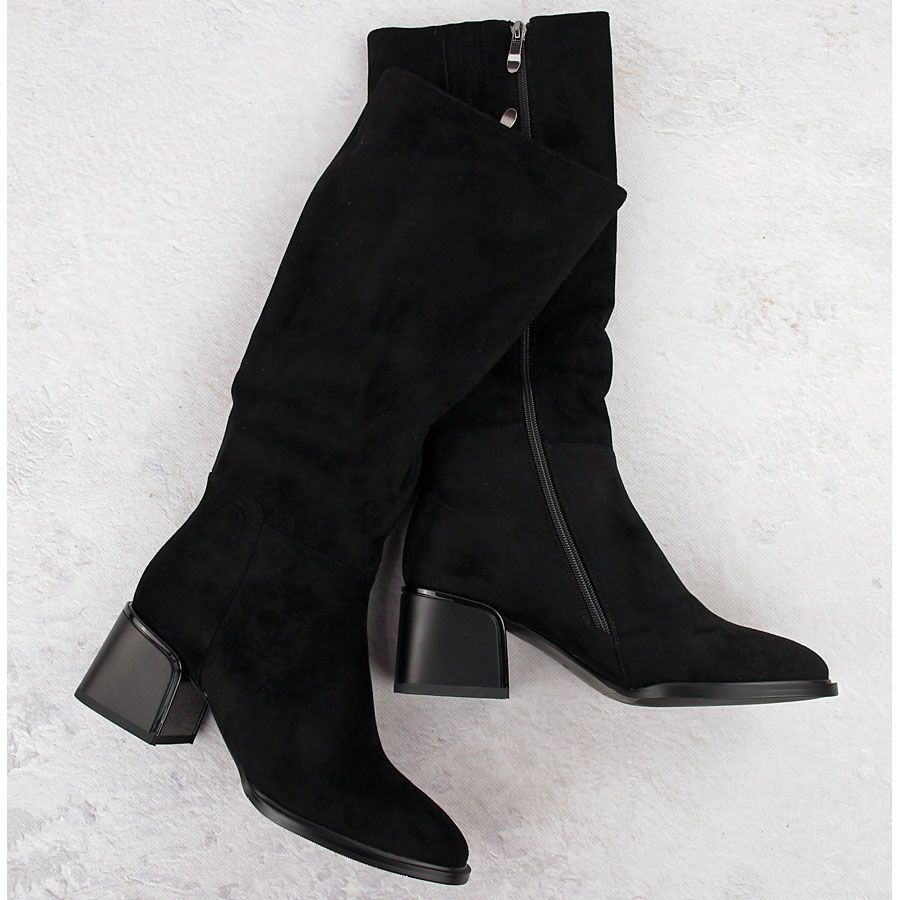 Denna modell har en rund näsa och ett stabilt block med en höjd av 6 cm, vilket ökar bekvämligheten med användning, som är idealiskt lämpad för både vardagliga stiliseringar och eleganta utgångar. Stövlar finns i en klassisk svart färg som matchar många kläder, och deras universella snitt gör dem till ett stort komplement till varje garderob.